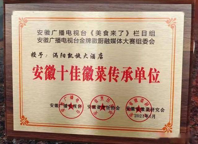2021年:安徽广播电视台、安徽省烹饪协会授予传承工匠奖。