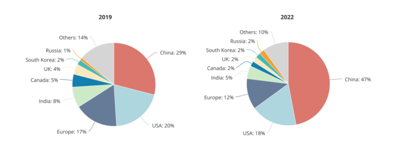 MacroPolo发布的《全球人工智能人才追踪调查报告2.0》显示,来自中国的顶尖AI研究人员占比在2019年到2022年间,已经从29%提升到了47%。