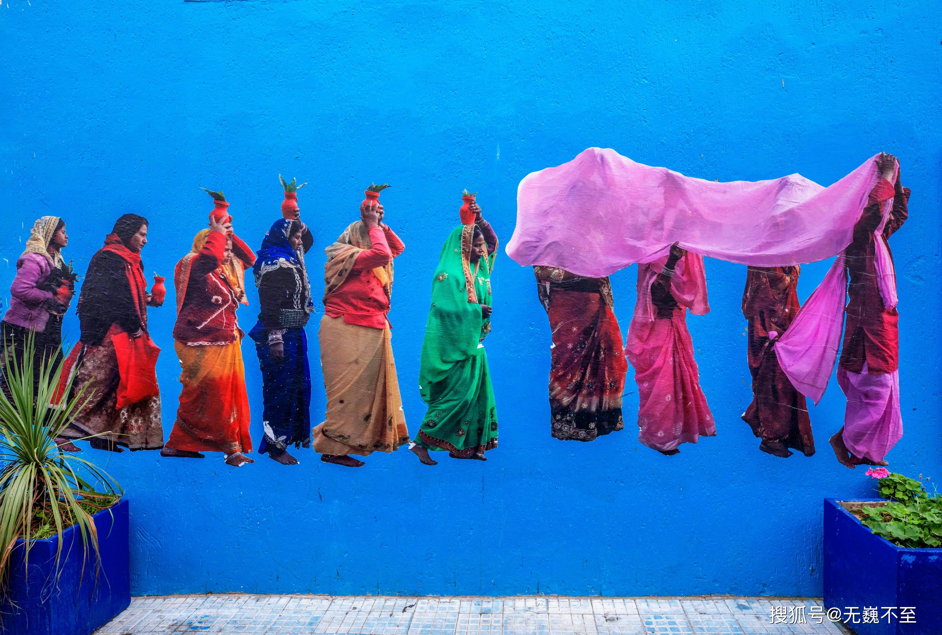 用碎石铺就的小道顺着曲折蜿蜒的巷道朝不同方向延伸,两边则是涂刷成上白下蓝的古老民居,墙上绘有或贴着反映当地特色的画儿!