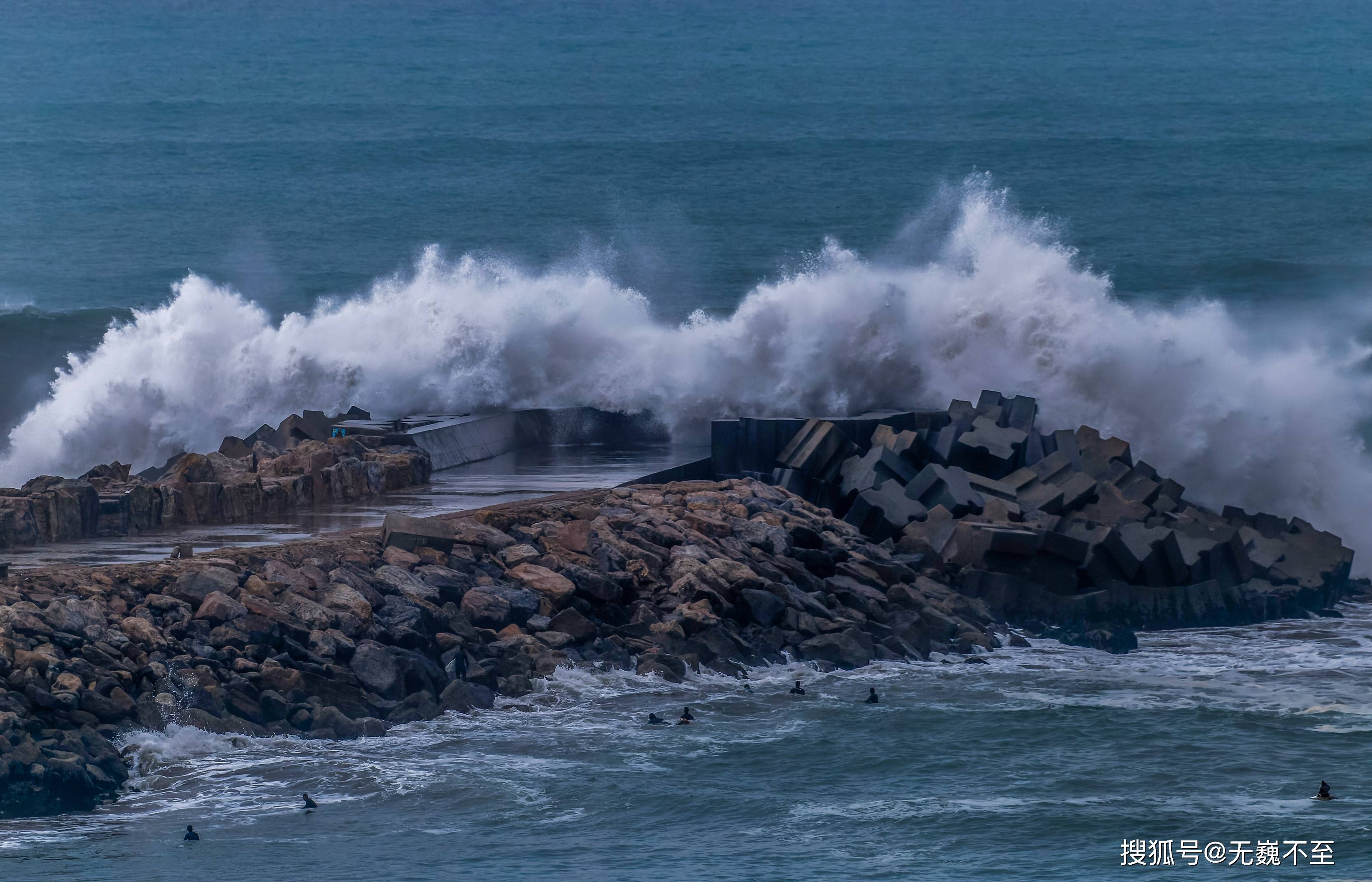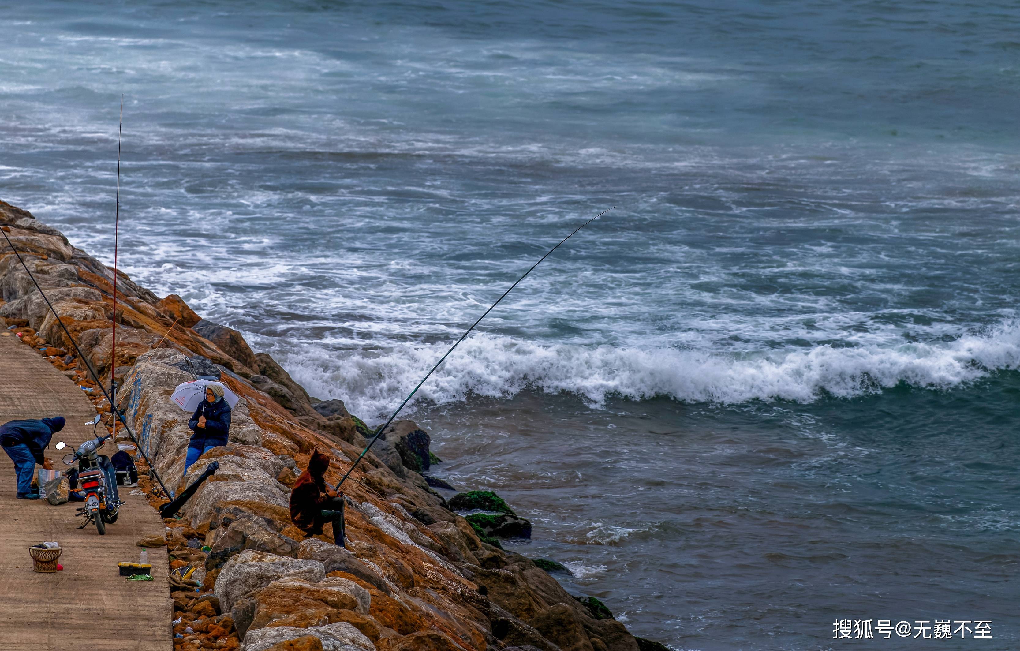 防波堤上,尽管风高浪急,这些海钓爱好者依然不分男女老幼,在风中持杆守候。