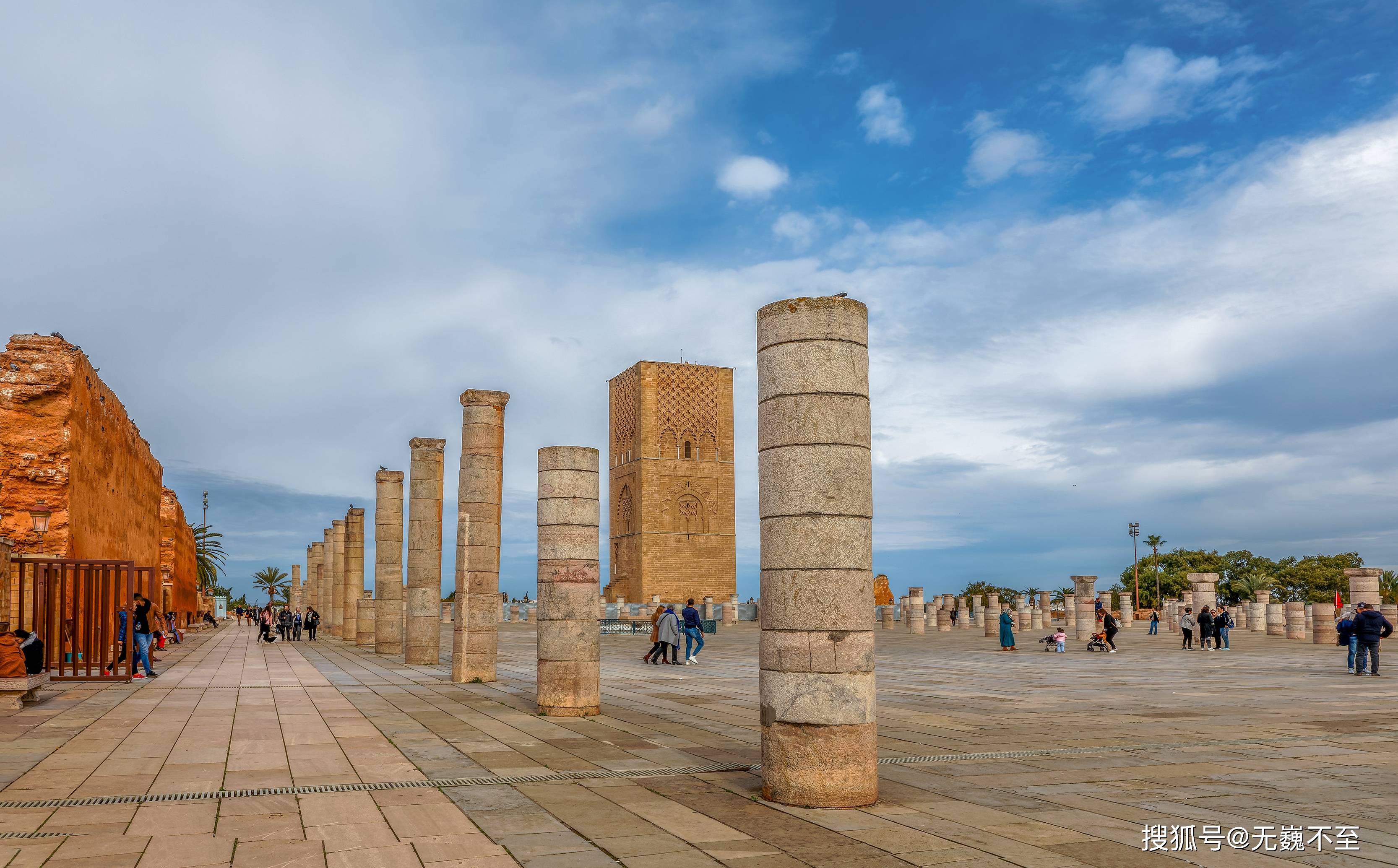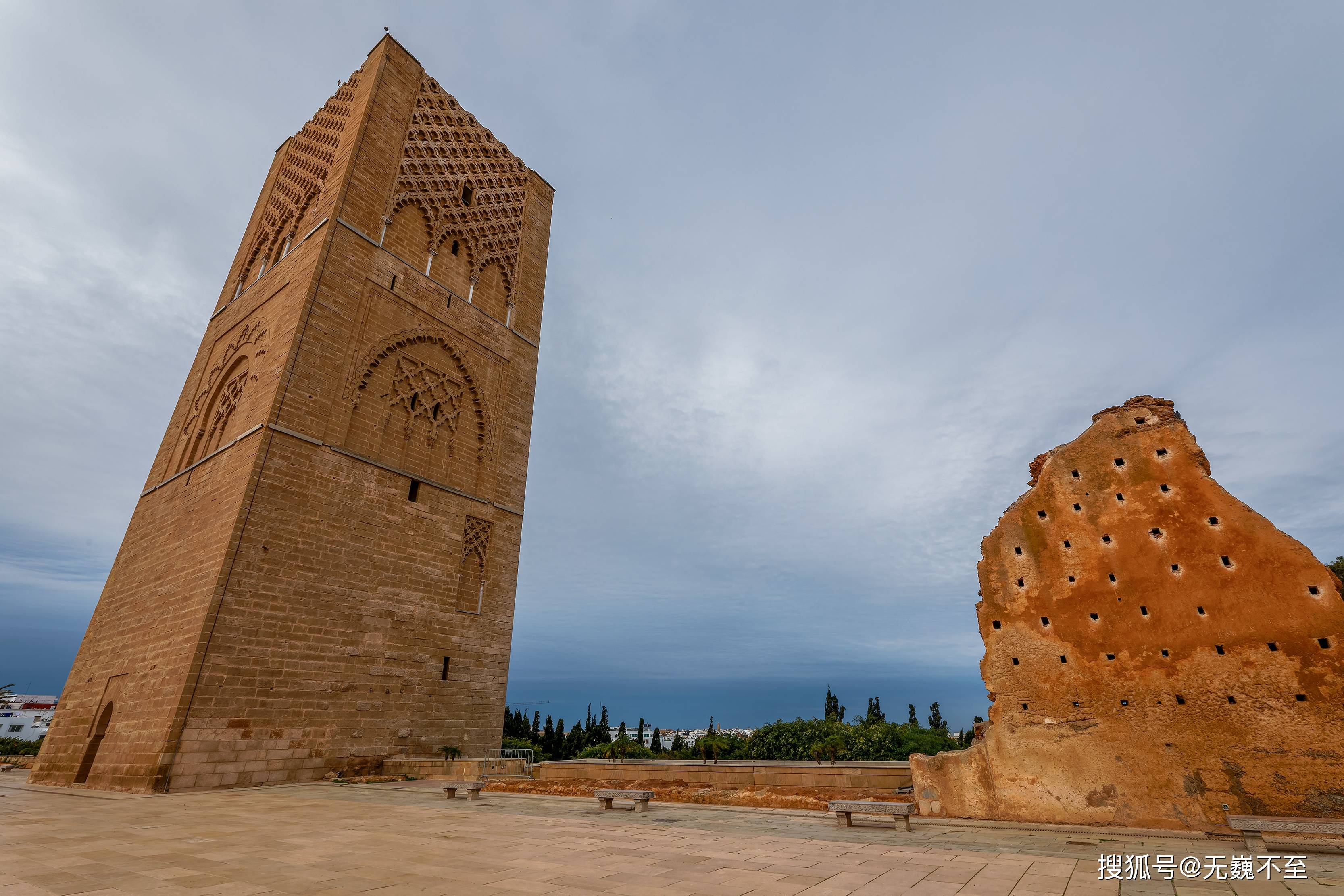 颓塔倚着残墙,远处是蔚蓝的大西洋,半截哈桑塔和布满孔洞的夯土墙泪眼相望,它们用令人震撼的残缺美无言地诉说着历史沧。