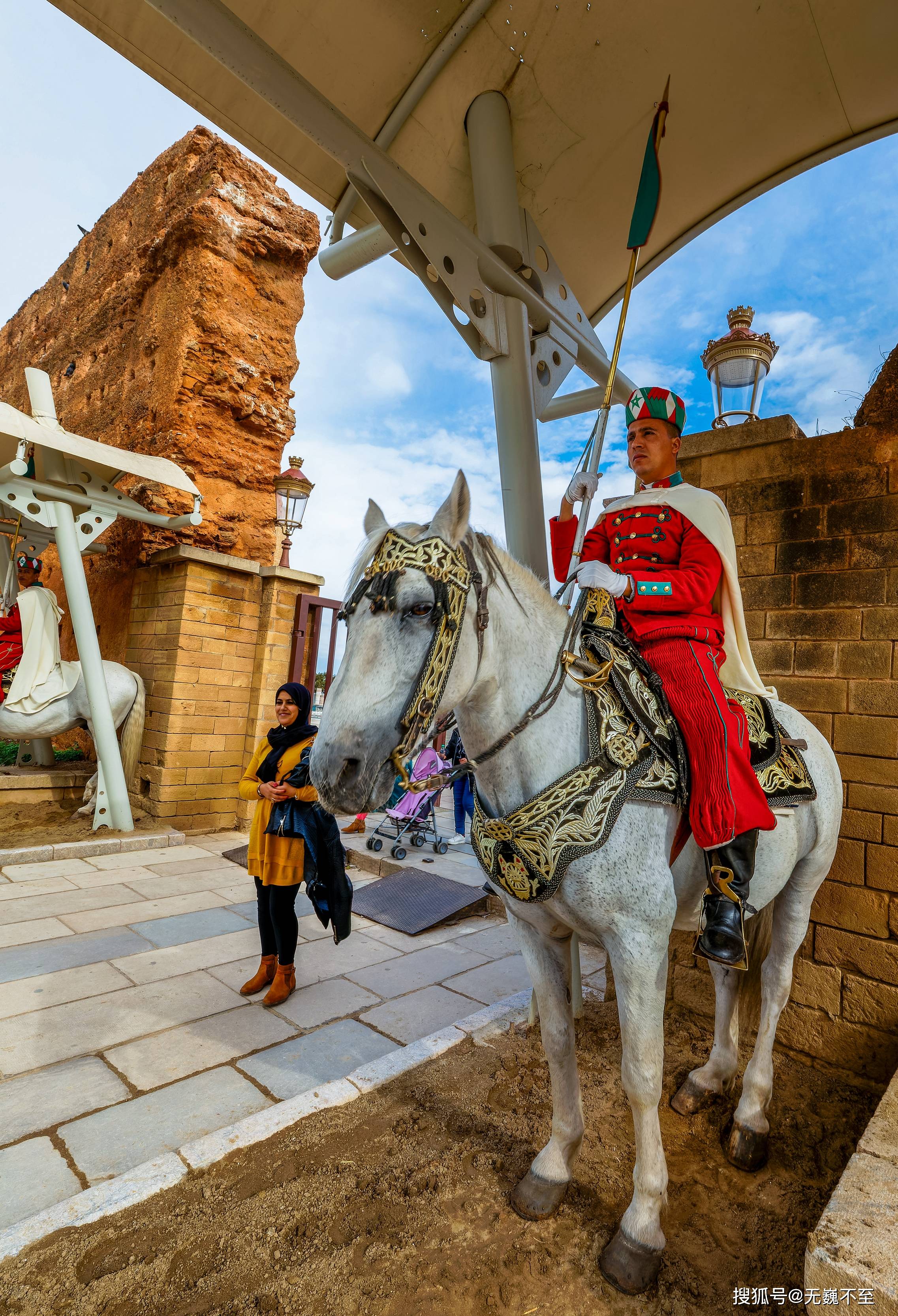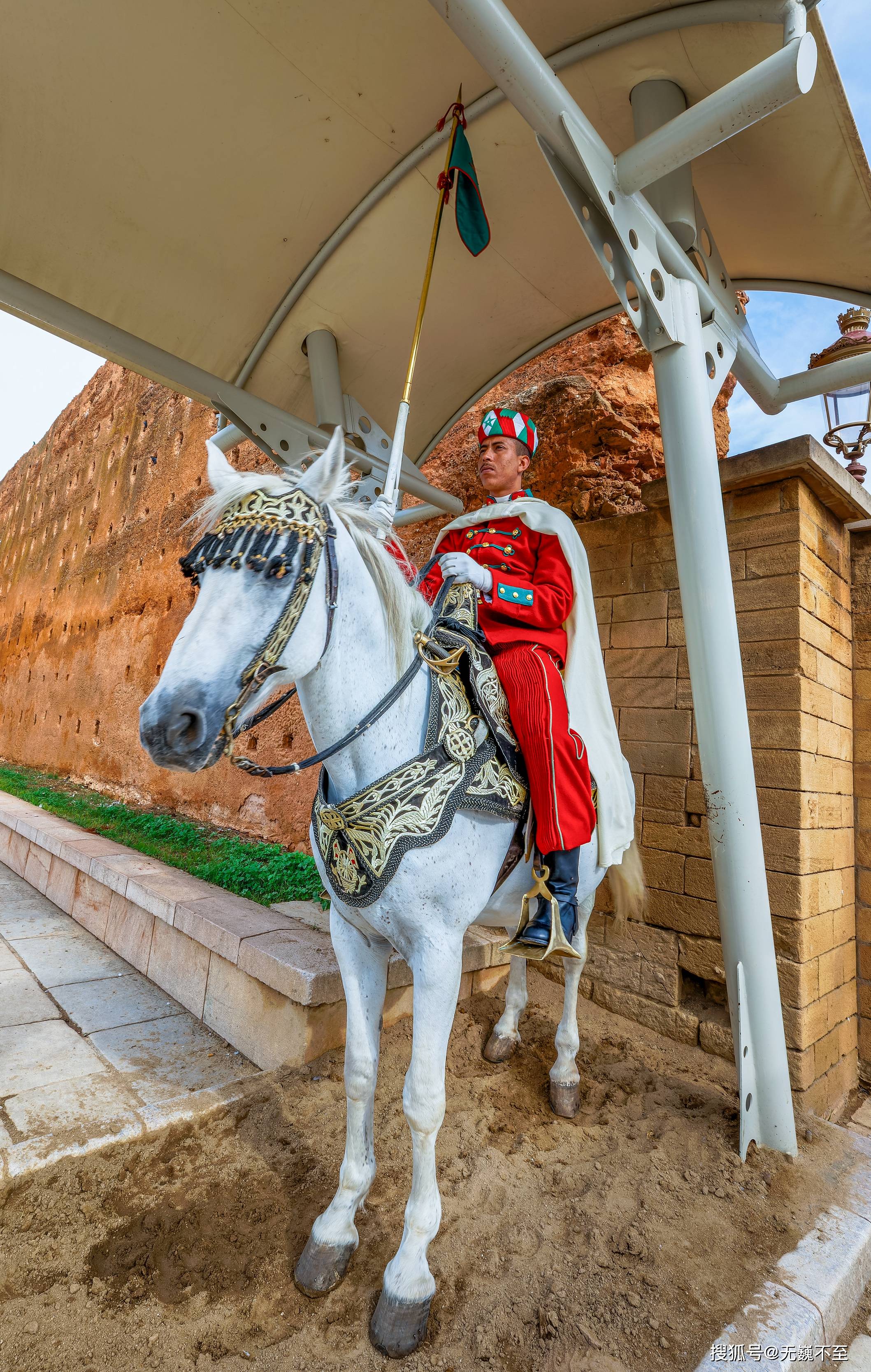 担负陵寝守卫任务的士兵隶属皇家卫队,他们身着红色制服骑在膘肥体壮的阿拉伯骏马上,手持金光闪闪的长矛,英姿勃勃,仪表堂堂,故被称作摩洛哥最帅的男人。(注:摩洛哥只有这里的军人可以拍照)