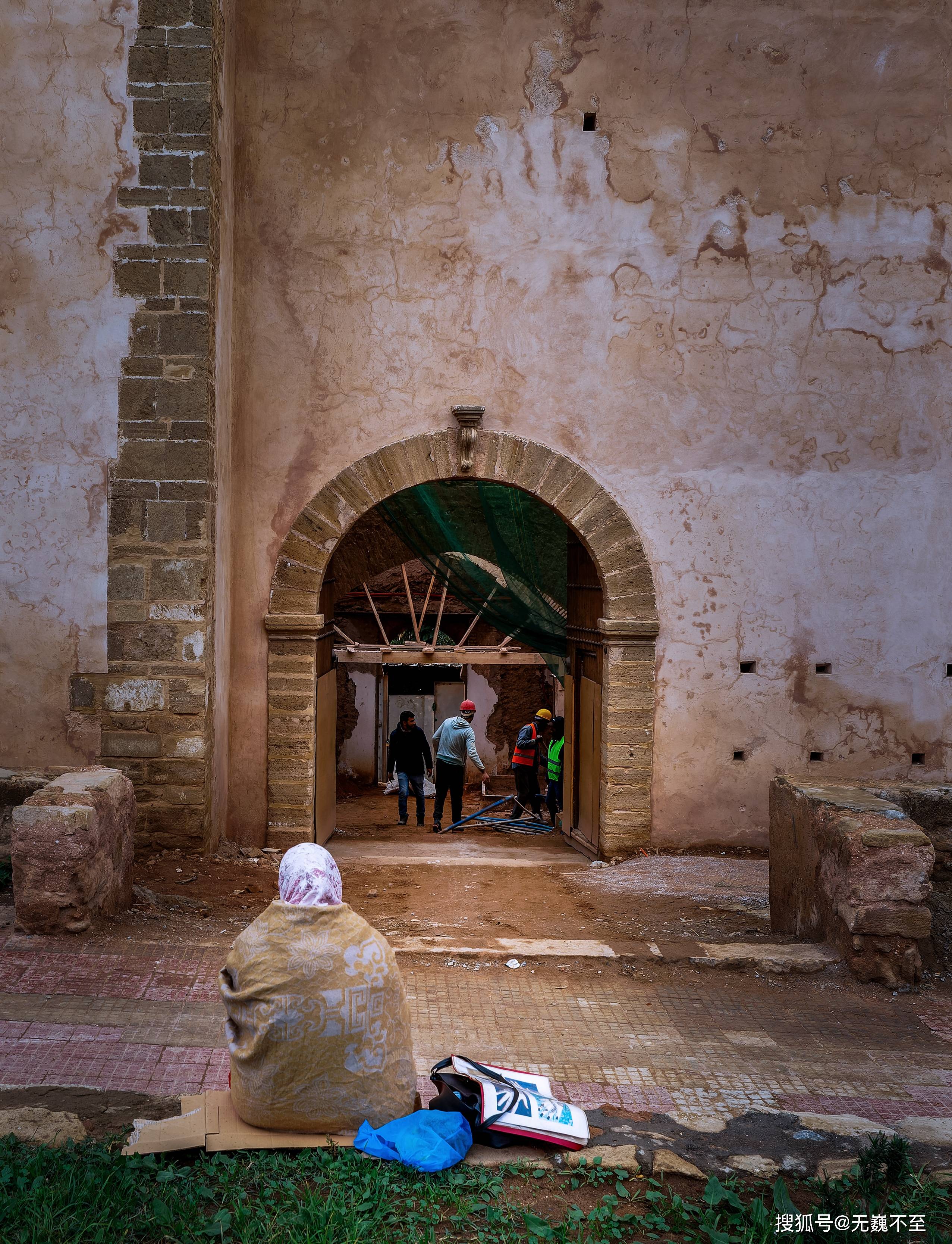 乌达雅城堡的入口,是一扇巨大的、被称作阿尔默哈德门的暗红色石门。它极其厚重,门楣上繁复的几何形雕花,被数百年的风沙与雨水蚀磨得有些模糊,却更显出一种庄严的钝感。门洞极深,像一条短促的隧道,将内外划成截然两个世界。