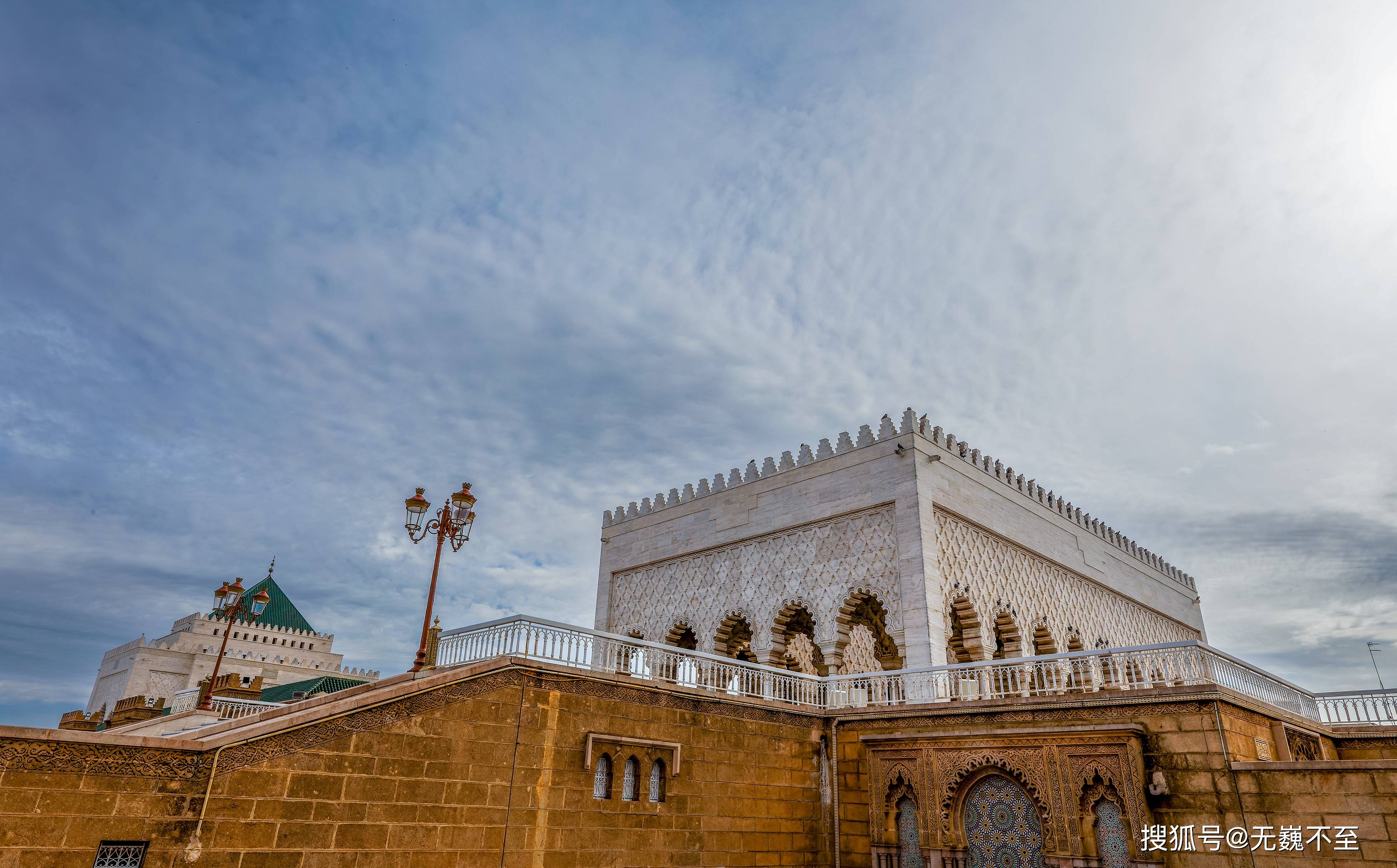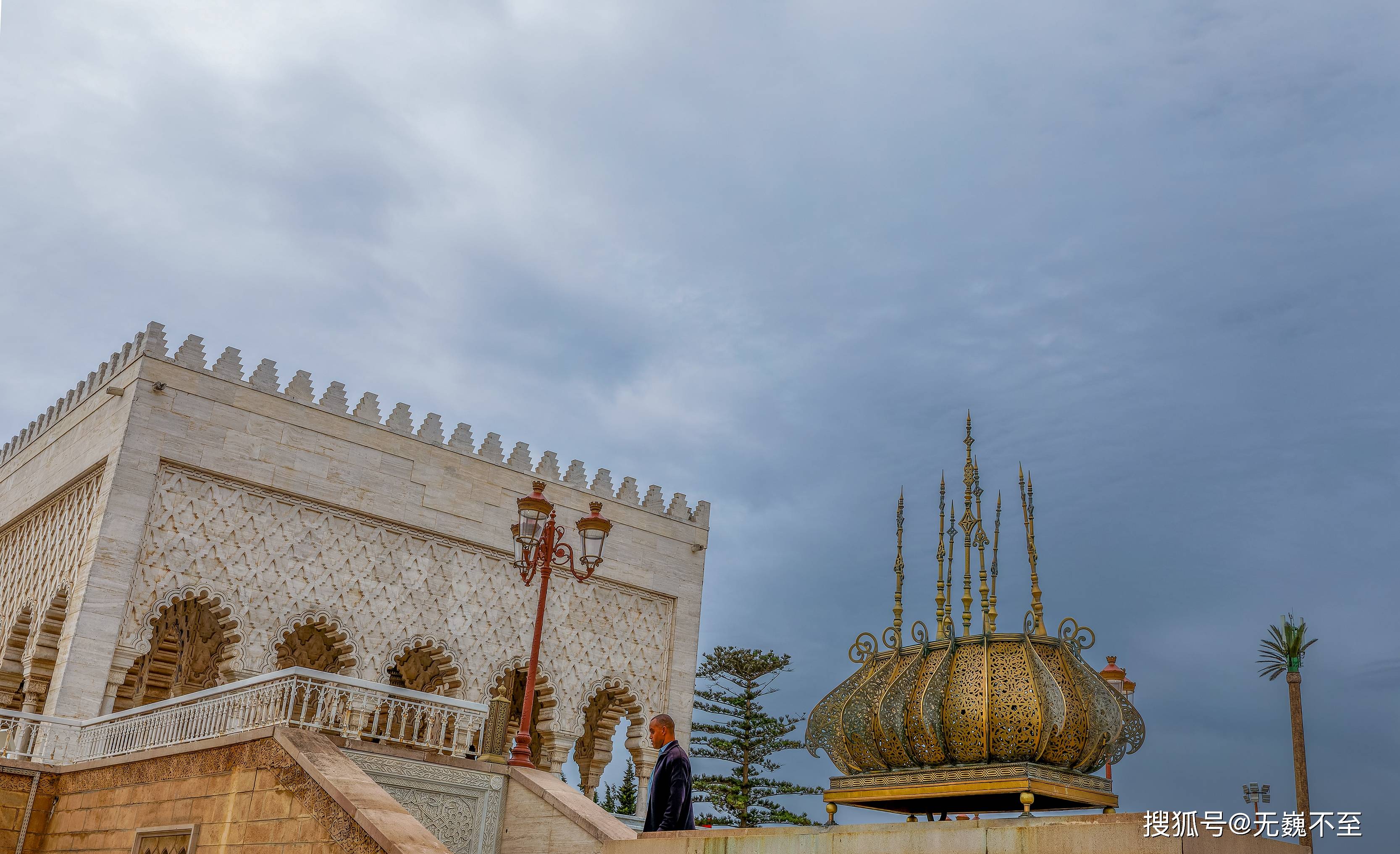 巨大的石柱林,如一片寂寥的森林,或者巨兽死后嶙峋的肋骨,刺向逐渐阴沉的天空。苍穹之下,便是摩洛哥国父穆罕默德五世的陵墓。