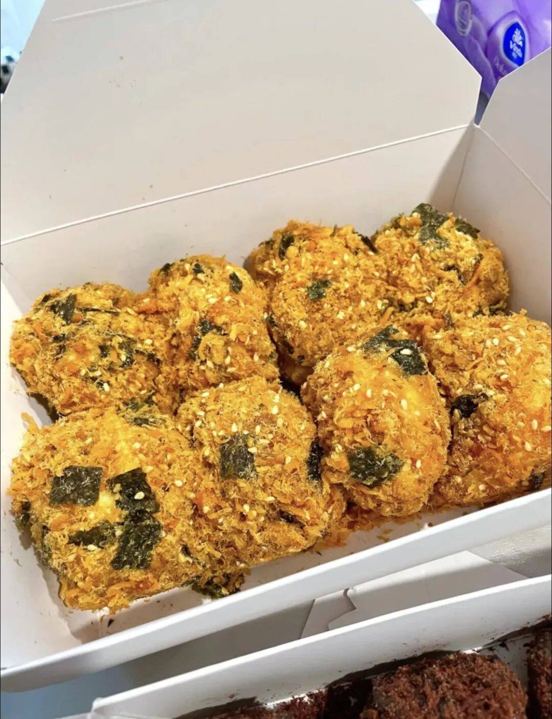 轻盈湿润的小贝蛋糕体,裹上厚厚肉松和海苔,夹心奶香浓郁,甜咸完美平衡。
