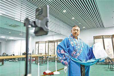 演员苏卫东通过网络直播让更多人了解东路二人台艺术。