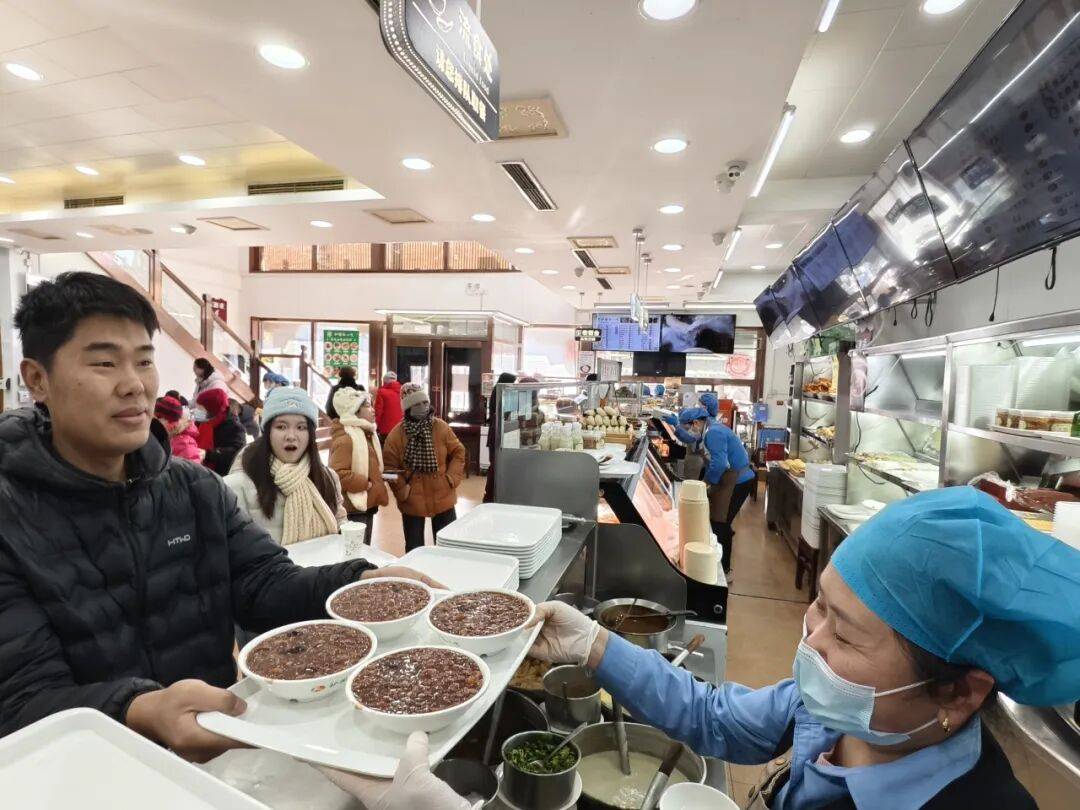 预计护国寺小吃总店腊八粥周末日销量将超过千碗,腊八当天销量将超过2000碗。同时,除了成品腊八粥,这家非遗小吃店还销售粥料,线上线下同时有售,让愿意在家中体验民俗快乐的人们能轻松践行食俗。