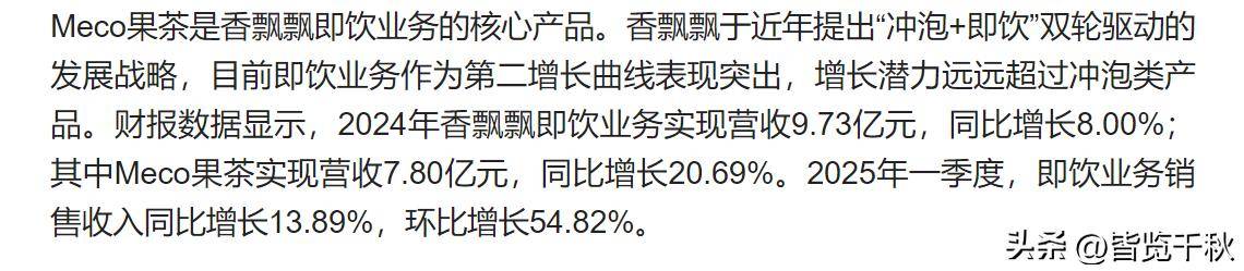 这时候机遇窗口其实已经被新势力占满了。但好在这条线倒是真撑起来了,2024年这条业务贡献了7.8亿元营收,成为香飘飘的“救命稻草”。
