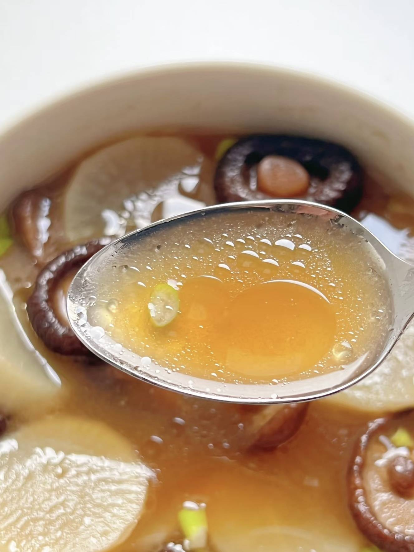 炖煮大约30分钟后,萝卜片会变得非常软烂,香菇也完全吸收了汤汁的味道。这时,你可以尝一下汤的味道,根据个人口味进行调整。如果觉得味道还不够浓郁,可以继续炖煮一段时间,直到达到满意的口感。最后,撒上一些葱花作为点缀,一碗色香味俱全的素烧萝卜汤就完成了。这道汤不仅味道鲜美,而且营养丰富,萝卜中的维生素C和香菇中的蛋白质都是人体所需的重要营养素。素烧萝卜汤的制作虽然简单,但每一步都充满了对食材的尊重和对味道的追求。在寒冷的冬日里,为家人端上这样一碗热汤,不仅能温暖他们的胃,更能温暖他们的心。这道汤的美妙之处在于它的简单和纯粹。没有复杂的烹饪技巧,也没有过多的调料,却能让人在品尝的瞬间感受到家的温暖。它就像是冬日里的一缕阳光,温暖而不刺眼,让人在忙碌的生活中找到一丝宁静和满足。