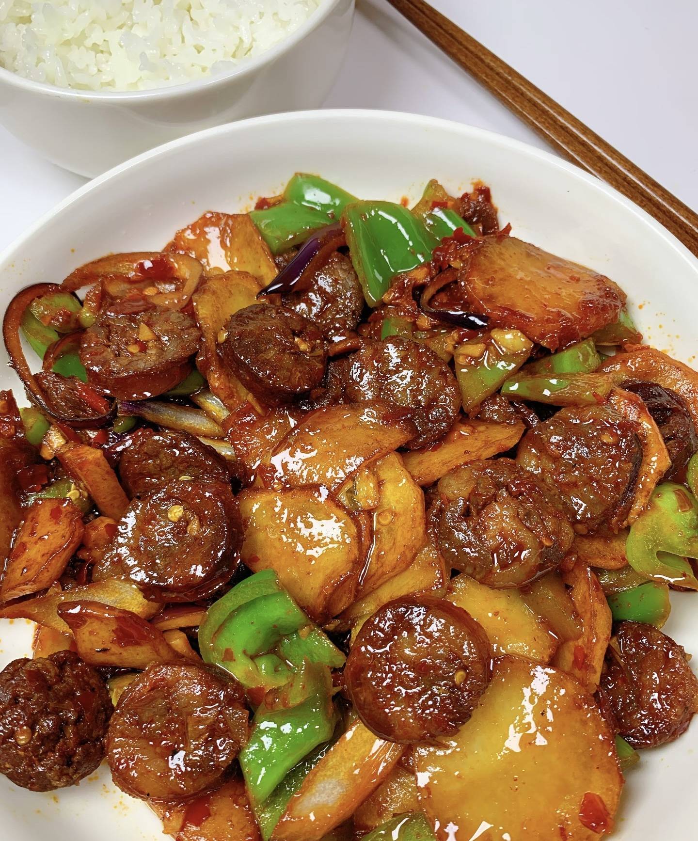 这道菜第一次出现在我家餐桌,还是几年前冬天。那天降温,我下班回家又冷又饿,翻遍冰箱只有两个土豆和半根腊肠。随手炒了一盘,没想到味道出奇的好,老公一边吃一边说:“这比外面餐馆的干锅还香!”后来这道菜就成了我家的“应急菜”——朋友突然来访、不想点外卖的时候,十分钟就能端上桌,烟火气里藏着的,是对生活的随性与热爱。
