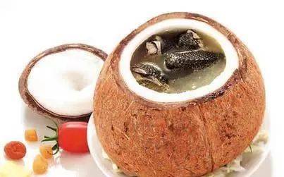 食材:椰子、乌鸡、杏仁、金华火腿、清水、盐、白胡椒粉
