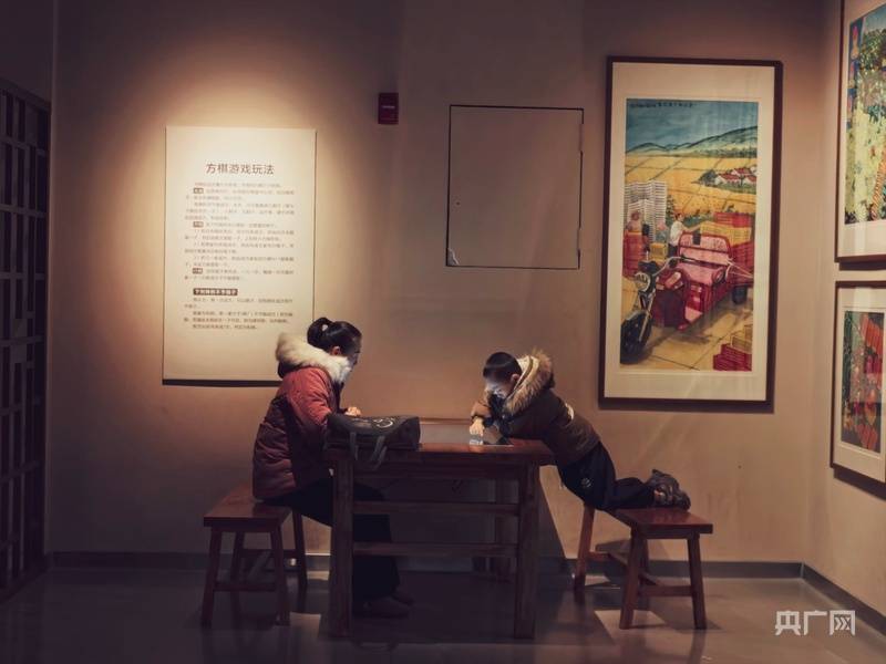孩童与妈妈对坐专注玩方棋游戏(央广网发 马秀莲 摄)