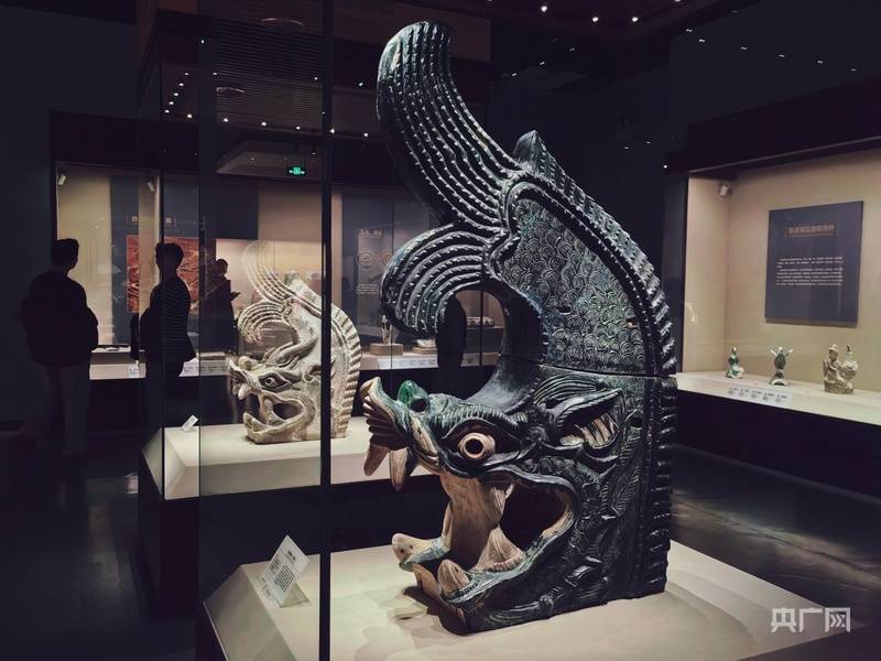 琉璃鸱吻展品威严陈列于展柜中(央广网发 马秀莲 摄)
