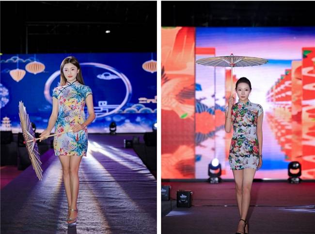 随后,高档婉约的青花瓷旗袍秀登场,佳丽们身着非遗工艺打造的高定旗袍,手持油纸伞款款登台。与此同时,马诗淼小朋友现场演奏古筝《青花瓷》,悠扬婉转的琴声流淌着东方古典韵律,与青花古韵、小镇辣椒文化交织碰撞,将东方美学的雅致温婉与稼依本土的烟火气完美融合,传统国风之美被演绎得淋漓尽致,赢得现场观众满堂喝彩。